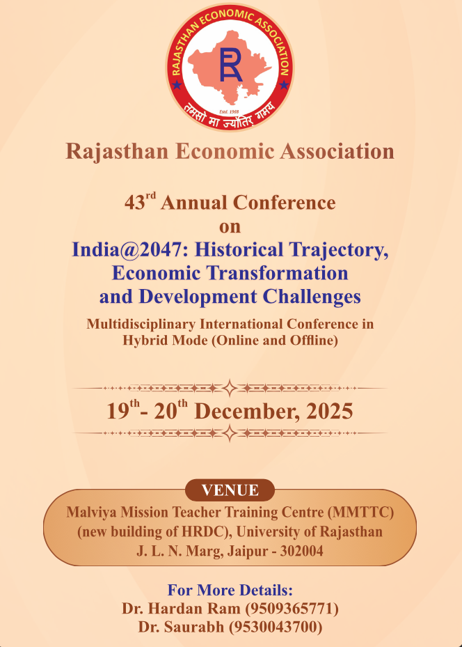 Rajasthan Economic Journal is a peer reviewed and refereed bi-annual publication of the Rajasthan Economic Association (REA).